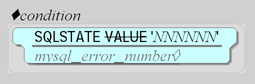 condition◊ as in: CREATE PROCEDURE … DELCARE … CONDITION FOR condition◊ … ; (manual's condition_value for Conditions)